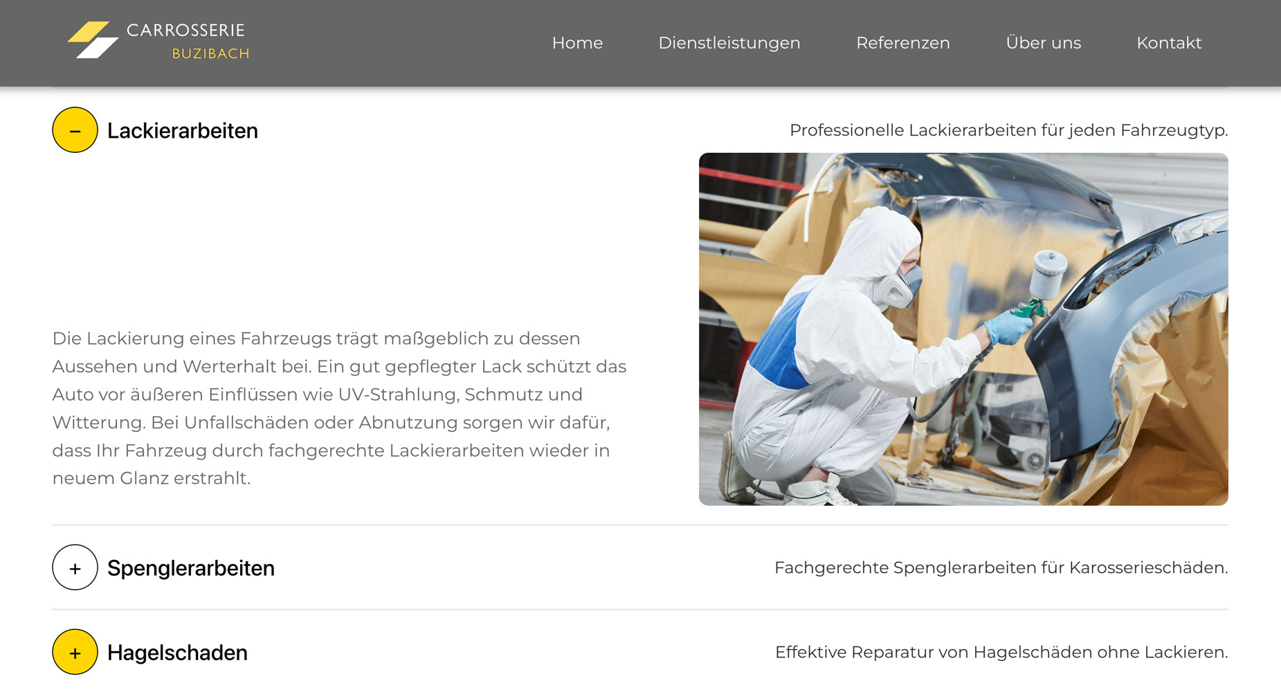 We built the website to be fast, clear, and practical — just like the services Carrosserie Buzibach provides. The structure is lightweight and responsive, allowing customers to access information easily on any device. Service pages highlight accident repairs, painting, and glass replacement in a straightforward way, while integrated contact options make it simple to request estimates or schedule an appointment. The result is a digital presence that mirrors the workshop itself: professional, trustworthy, and focused on customer needs.